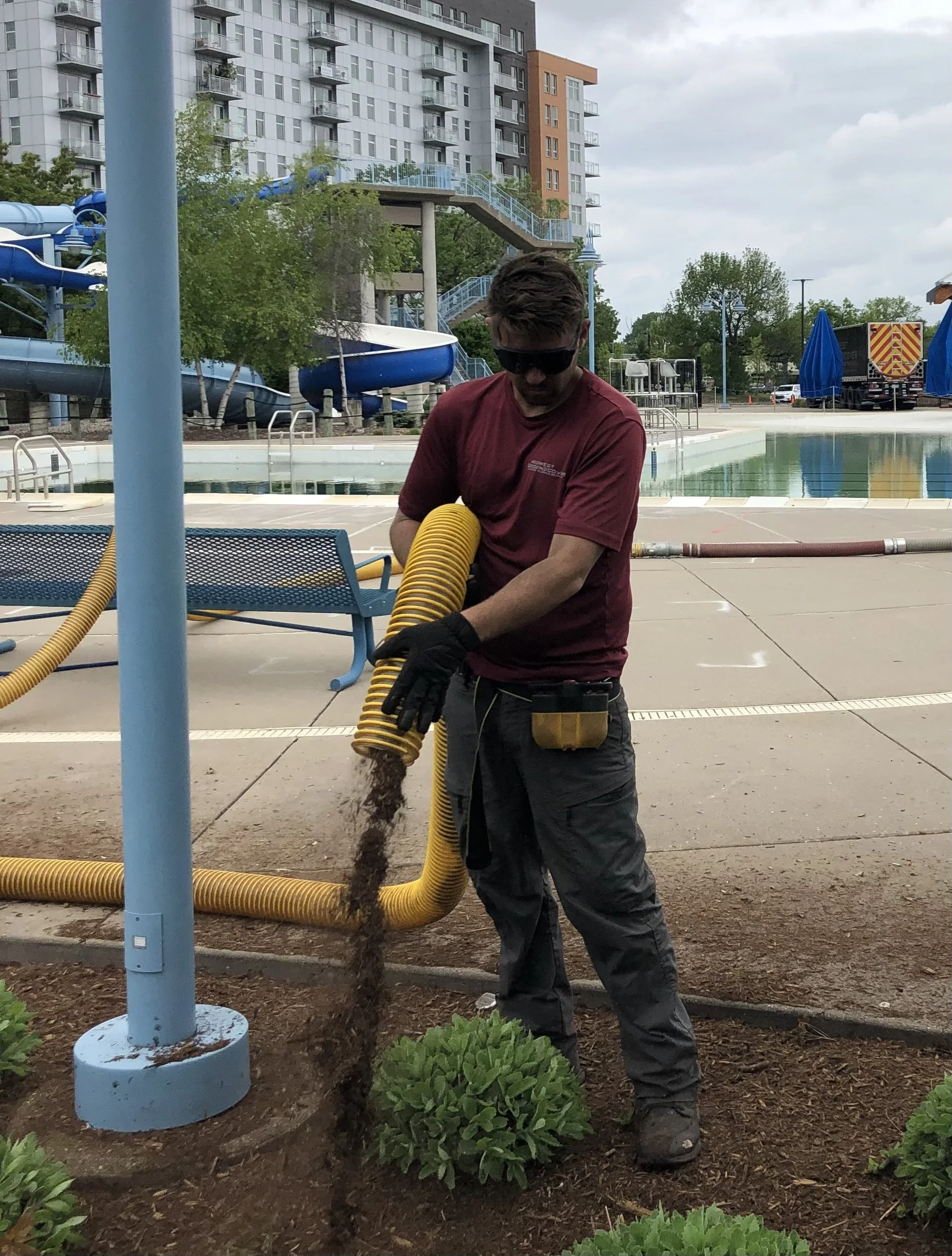 In addition to safety surfacing, we supply and install a comprehensive range of related products, including rubber mulch, landscape mulch, drainage rock and sand, geotextile fabric, drain tile systems, custom fit wear mats, and blown in soil with seeding for efficient site restoration.